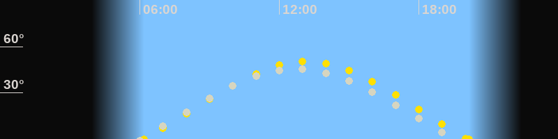 Höchster Sonnenstand (Kulmination)13:09 Uhr (h = 50.5°)