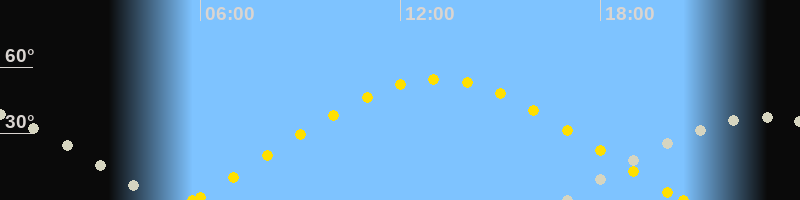 | Sonnenuntergang | 20:30 Uhr im Nordwesten (αAz = 295.7°) |