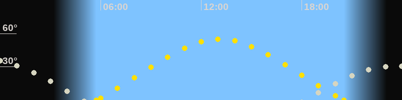 | Höchster Sonnenstand (Kulmination) | 13:07 Uhr (h = 55°) |
