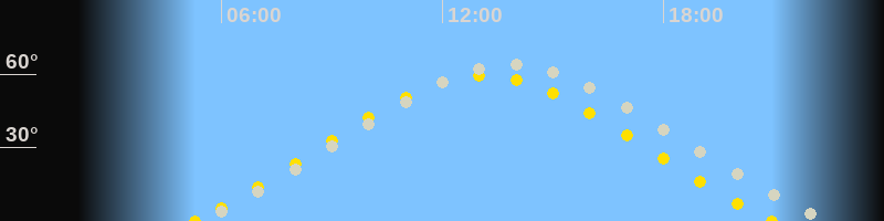 | Höchster Sonnenstand (Kulmination) | 13:06 Uhr (h = 59.3°) |