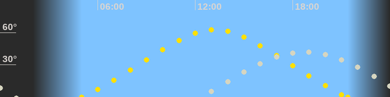 Höchster Sonnenstand (Kulmination)13:12 Uhr (h = 62.7°)
