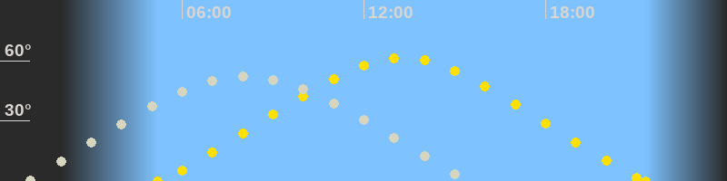 Höchster Sonnenstand (Kulmination)13:15 Uhr (h = 61.4°)