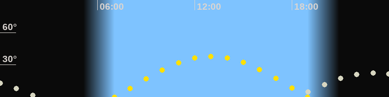 | Höchster Sonnenstand (Kulmination) | 13:01 Uhr (h = 38°) |