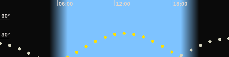 | Sonnenaufgang | 07:05 Uhr im Osten (αAz = 91.7°) |