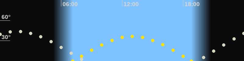 Höchster Stand (Kulmination)01:28 Uhr (h=43.6°)