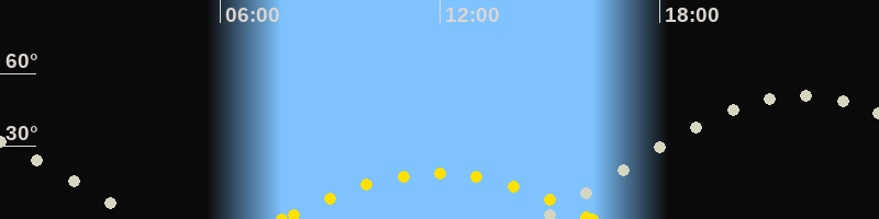 | Höchster Sonnenstand (Kulmination) | 11:56 Uhr (h = 18.7°) |
