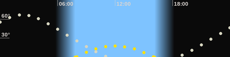 | Höchster Sonnenstand (Kulmination) | 11:58 Uhr (h = 17.6°) |