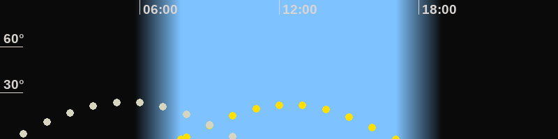 | Höchster Sonnenstand (Kulmination) | 12:23 Uhr (h = 22.4°) |