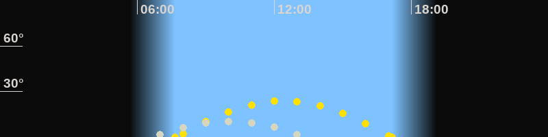 | Höchster Sonnenstand (Kulmination) | 12:24 Uhr (h = 23.9°) |