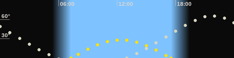 | Höchster Sonnenstand (Kulmination) | 12:23 Uhr (h = 28.3°) |