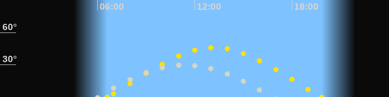 Höchster Sonnenstand (Kulmination)13:12 Uhr (h = 46°)