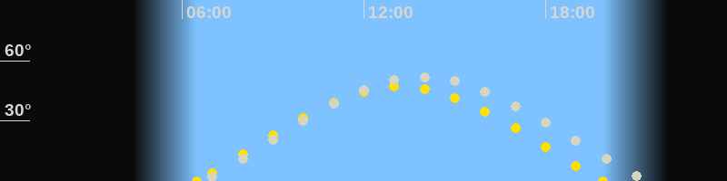 | Höchster Sonnenstand (Kulmination) | 13:11 Uhr (h = 47.1°) |