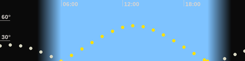 Sonnenaufgang05:58 Uhr im Osten (αAz = 68.4°)