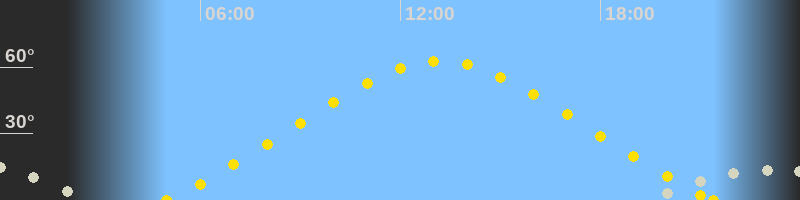 Höchster Sonnenstand (Kulmination)13:11 Uhr (h = 62.7°)