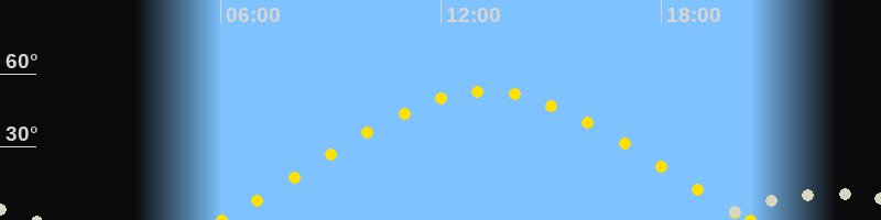 | Sonnenaufgang | 06:01 Uhr im Osten (αAz = 67.5°) |