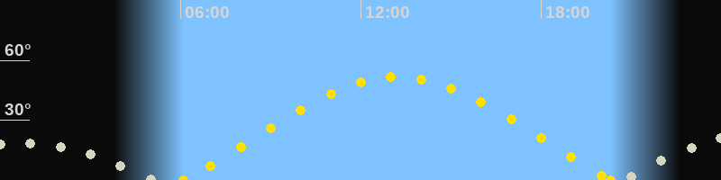 | Sonnenaufgang | 06:06 Uhr im Osten (αAz = 69.1°) |