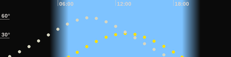 | Höchster Stand (Kulmination) | 09:15 Uhr (h=62.6°) |