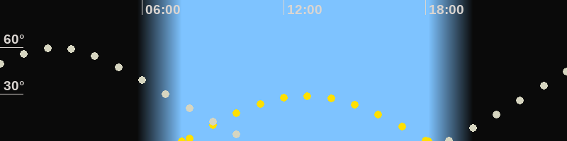 | Höchster Sonnenstand (Kulmination) | 12:55 Uhr (h = 29°) |