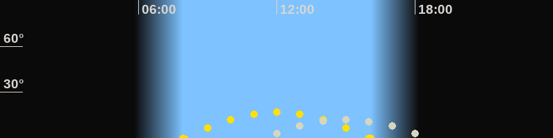 | Höchster Sonnenstand (Kulmination) | 12:00 Uhr (h = 16.9°) |