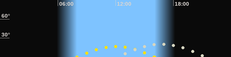 | Höchster Sonnenstand (Kulmination) | 12:01 Uhr (h = 16.7°) |