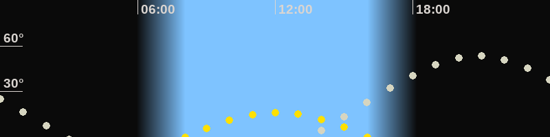 | Höchster Sonnenstand (Kulmination) | 12:03 Uhr (h = 16.2°) |