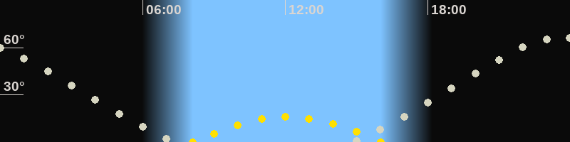 | Höchster Sonnenstand (Kulmination) | 12:05 Uhr (h = 16°) |