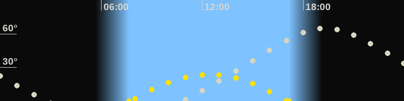 | Höchster Sonnenstand (Kulmination) | 12:24 Uhr (h = 23.8°) |