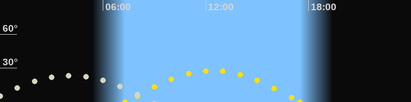 | Sonnenuntergang | 17:30 Uhr im Westen (αAz = 252.6°) |