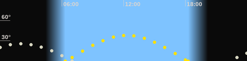 Höchster Sonnenstand (Kulmination)12:18 Uhr (h = 38.1°)