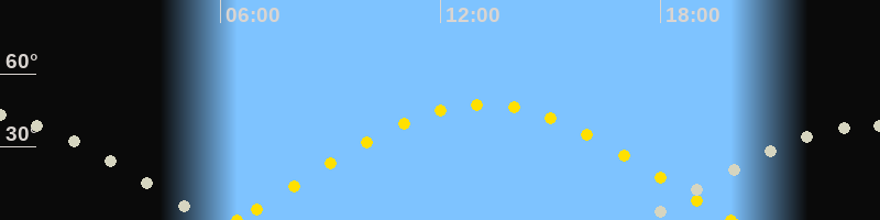 | Höchster Sonnenstand (Kulmination) | 13:11 Uhr (h = 47.4°) |