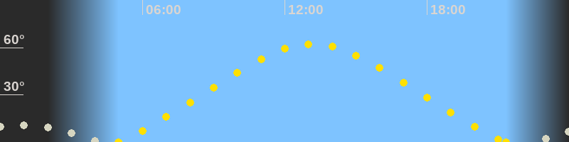 | Höchster Sonnenstand (Kulmination) | 13:10 Uhr (h = 62.4°) |