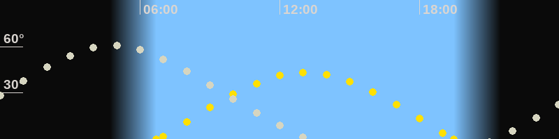 | Höchster Sonnenstand (Kulmination) | 13:06 Uhr (h = 43.2°) |