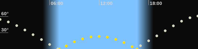 | Höchster Sonnenstand (Kulmination) | 11:53 Uhr (h = 23.4°) |