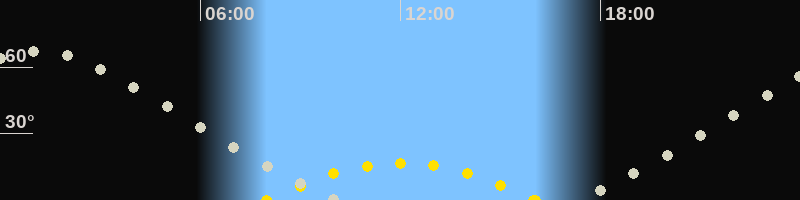| Höchster Sonnenstand (Kulmination) | 12:01 Uhr (h = 16.7°) |