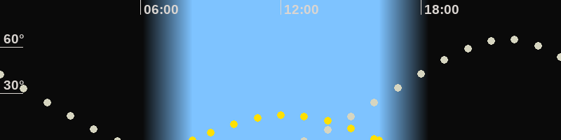 Höchster Sonnenstand (Kulmination)12:13 Uhr (h = 16.2°)