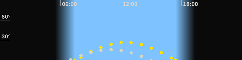 | Höchster Sonnenstand (Kulmination) | 12:24 Uhr (h = 26.7°) |