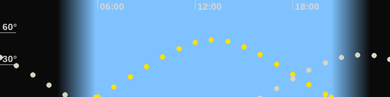 | Sonnenaufgang | 05:53 Uhr im Nordosten (αAz = 67.1°) |