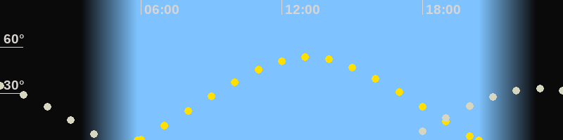 | Höchster Sonnenstand (Kulmination) | 13:07 Uhr (h = 53.5°) |