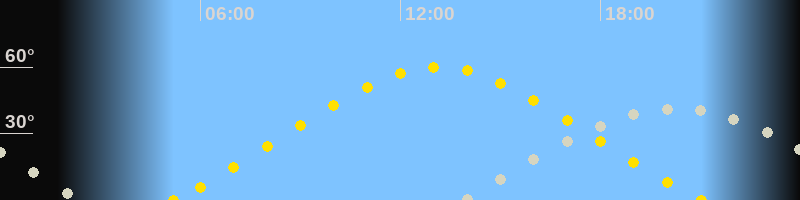 Höchster Sonnenstand (Kulmination)13:07 Uhr (h = 60.1°)