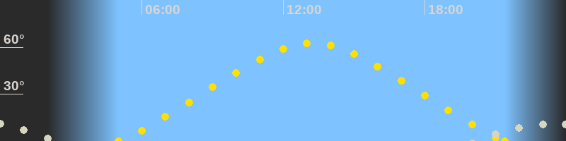 Höchster Sonnenstand (Kulmination)13:13 Uhr (h = 62.6°)