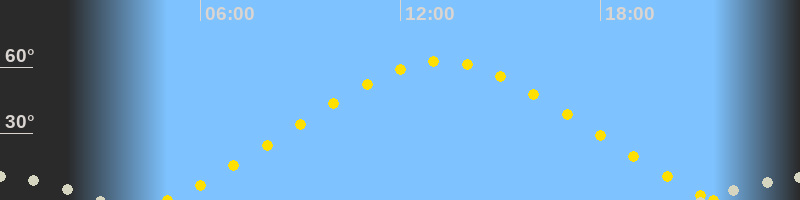Höchster Sonnenstand (Kulmination)13:13 Uhr (h = 62.5°)
