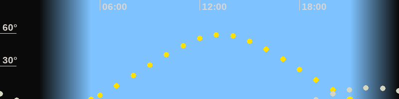 | Höchster Sonnenstand (Kulmination) | 13:16 Uhr (h = 58.8°) |