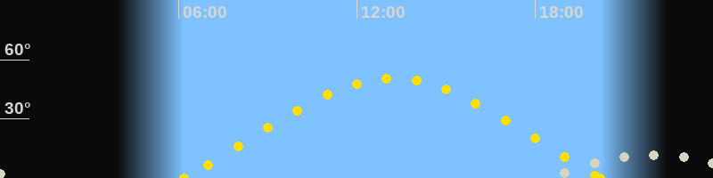 Sonnenaufgang06:11 Uhr im Osten (αAz = 71°)