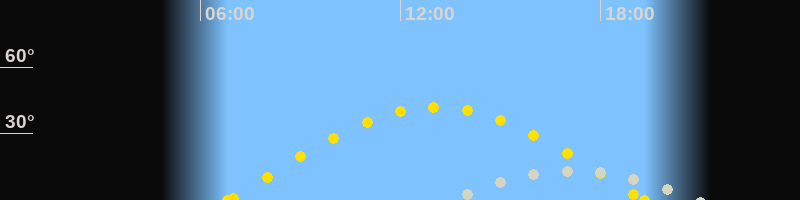 | Höchster Sonnenstand (Kulmination) | 13:05 Uhr (h = 41.8°) |