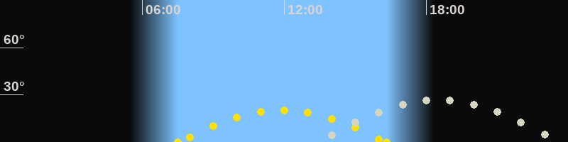 Höchster Stand (Kulmination)18:23 Uhr (h=26.5°)