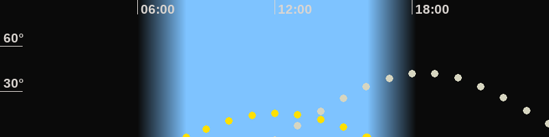 | Höchster Sonnenstand (Kulmination) | 12:06 Uhr (h = 15.9°) |