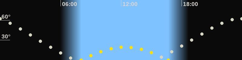 | Höchster Sonnenstand (Kulmination) | 12:21 Uhr (h = 19.4°) |