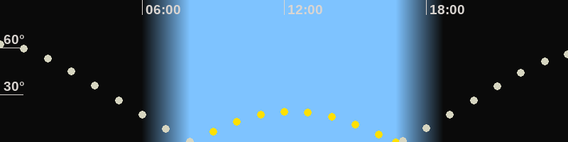 Höchster Sonnenstand (Kulmination)12:21 Uhr (h = 19.6°)