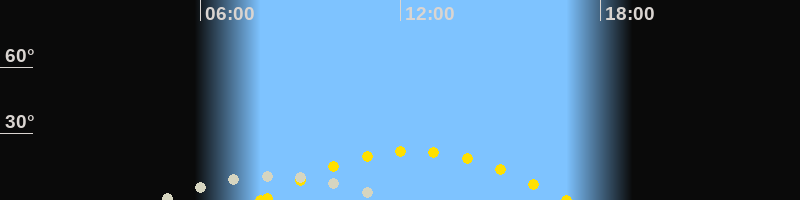 | Höchster Stand (Kulmination) | 08:13 Uhr (h=11.1°) |