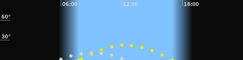 | Höchster Sonnenstand (Kulmination) | 12:23 Uhr (h = 22.5°) |